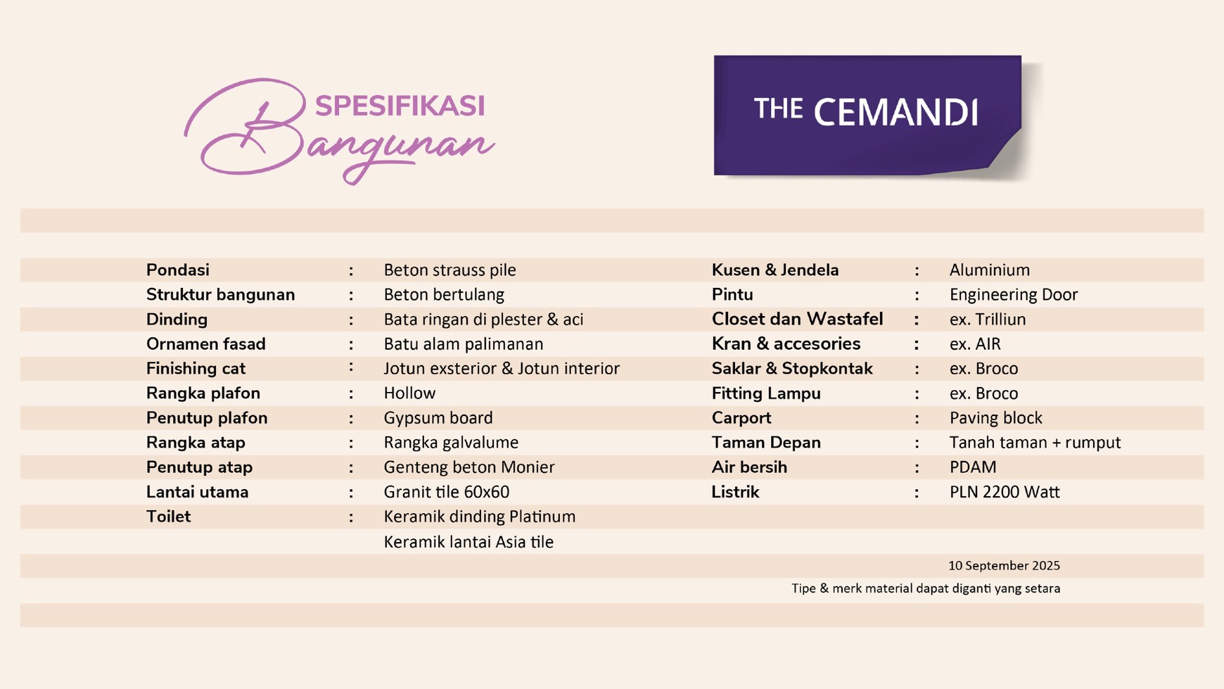 Inilah sebuah kesempatan untuk mendapatkan memiliki kehidupan yang baru. Sebuah hunian impian keluarga di tengah lingkungan dan atmosfer yang menyenangkan dan menyegarkan.